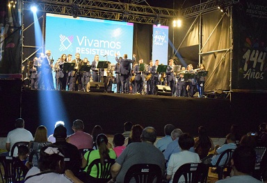 Locales | En el marco de los 144 años de Resistencia, Gustavo y distintas autoridades provinciales y municipales acompañaron los festejos por el 87° aniversario de la Banda Municipal “Luis Omobono Gusberti” en el Parque de la Democracia. Además, actuó la banda militar “Maestro Domingo Maracci, dependiente del Comando de la 3ra Brigada de Monte del Ejército Argentino, y la banda de la Penitenciaría de Corrientes.