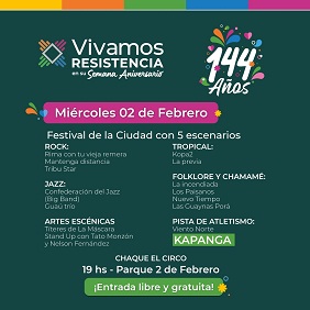 Locales | Resistencia se prepara para celebrar este miércoles 2 de febrero sus 144 años de vida y lo hará con actividades tanto por la mañana como por la tarde noche.
