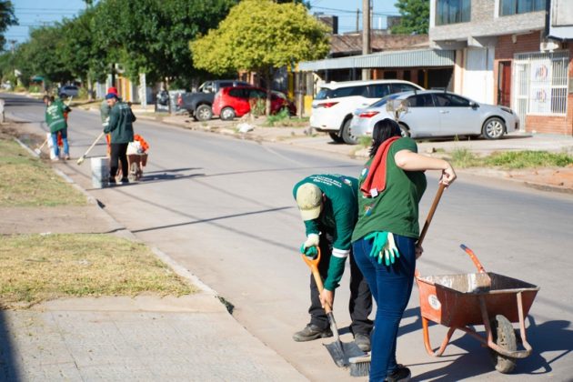 Trabajadores de la delegación municipal del barrio San Cayetano realizaron un operativo de saneamiento ambiental que consistió en desmalezado, barrido y pintura de cordones en todo el sector, a fin de mantener en buenas condiciones los espacios públicos donde circulan los vecinos.