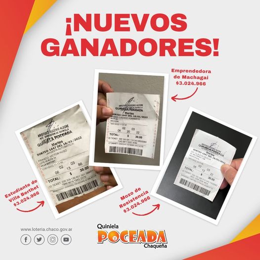 Locales | La Poceada Chaqueña sigue repartiendo alegrías, en este caso un estudiante de Villa Berthet, una emprendedora de Machagai y un mozo de Resistencia se llevaron más de tres millones de pesos, del sorteo del pasado 18 de enero.