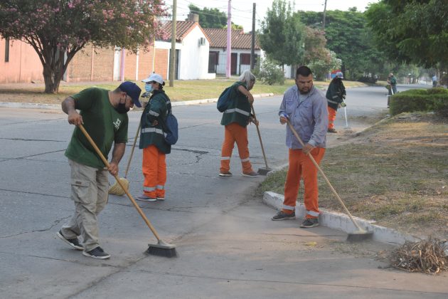 Locales | Con trabajos de barrido, pintura de cordones, desmalezado y recolección de residuos orgánicos, trabajadores municipales de la delegación 2 de Febrero continúan el saneamiento del barrio Paykin.