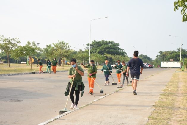 Locales | Autoridades municipales monitorearon acciones relacionadas al saneamiento integral del Parque de la Democracia, donde 40 operarios de la dirección general de Limpieza realizaron barrido y levantamiento manual de residuos y restos verdes para dejar en óptimas condiciones el espacio público.