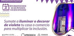 Locales | Del 26 de noviembre al 3 de diciembre se realizarán distintas actividades por la “Semana de la Inclusión”, que concluirán con la convocatoria a iluminar o decorar de violeta edificios públicos, comercios y casas.