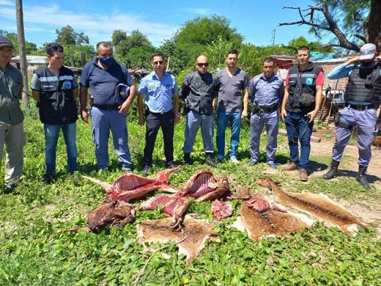 Locales | En la mañana del lunes, personal de la Sección Rural y Comisaria Quinta de Saenz Peña detuvieron a un hombre de 37 años y secuestraron carne y tres cueros que pertenecen a animales de especie Ciervo Axis Axis.