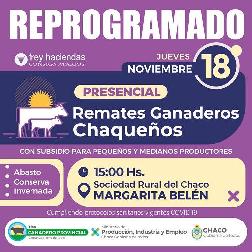 Locales | El decimoquinto remate de 2021 se realizará bajo la modalidad presencial con cumplimiento de los protocolos sanitarios vigentes. El cambio de fechas responde a los contratiempos causados por las inclemencias climáticas que afectan a la provincia.
