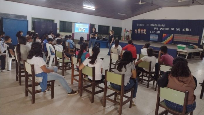 Locales | Este lunes, personal de la División Química Legal visitó la EEP N°5 “Ruiz Díaz Guzmán”, para disertar ante alumnos de quinto al séptimo grado sobre los efectos y consecuencias del uso de estupefacientes. Esta charla se desarrolló de manera didáctica con presentación de videos y documentales explicativos, contando con la presencia de docentes del establecimiento educativo.
