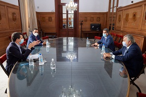El ministro del Interior, Wado de Pedro, recibió hoy a los gobernadores de Chaco, Jorge Capitanich; de Corrientes, Gustavo Valdés; y de Jujuy, Gerardo Morales, en una reunión en la que el funcionario nacional y los mandatarios provinciales avanzaron en el trabajo conjunto en torno al Plan de Desarrollo Federal, la iniciativa que apunta a mejorar la competitividad de las economías regionales, la infraestructura y promover la creación de empleo.