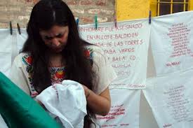 Internacionales | Los pañuelos que bordan activistas mexicanos contra la violencia de ese país son todos blancos y del mismo tamaño, y son bordados en rojo si cuentan un asesinato, y en verde si lo que se denuncia es una desaparición.