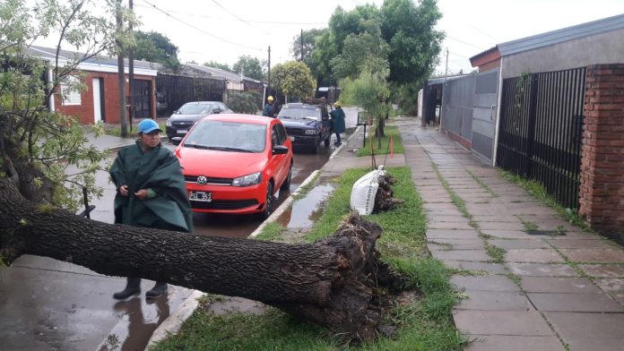Locales | La Municipalidad de Resistencia trabaja intensamente tras el fuerte temporal que se desató este sábado por la mañana y que azotó a la capital chaqueña. Informaron que se trató de la cola de un tornado, con una duración cercana a los 15’, que provocó voladuras de techos, árboles y columnas de alumbrado y telefonía. Asisten a familias damnificadas y ejecutan tareas para el funcionamiento de los desagües.