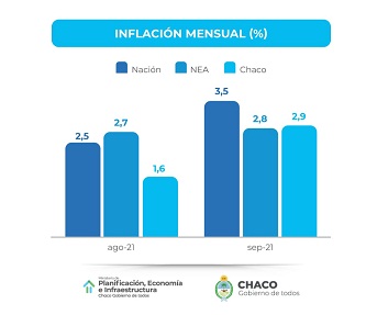 Locales | Mientras que la inflación a nivel nacional fue de 3,5% en septiembre, en el Gran Resistencia fue menor, alcanzando un 2,9%. Algo similar ocurrió en agosto, cuando la suba de precios en el país fue de 2,5% y en la Provincia de 1,6%.