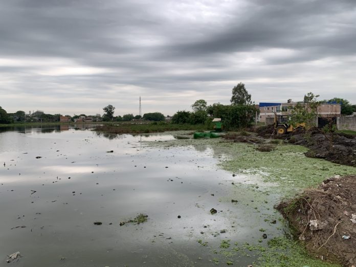 Locales | Sobre calle 13 y Julio A. Roca, operarios municipales trabajan en entubar la conexión natural que existía entre la laguna Seitor y la laguna del barrio Toba, permitiendo mejorar el escurrimiento del agua y evitar anegamientos.