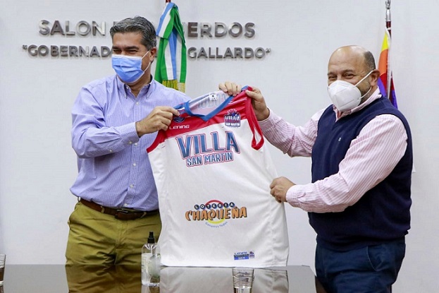 Locales | Durante el encuentro, los dirigentes agradecieron al mandatario el apoyo al club que participó de la Conferencia Norte de la Liga Argentina de Básquet representando a la provincia entre 30 clubes del país. Además, entregaron una camiseta del club al mandatario provincial.