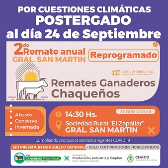 Locales | El evento, que es organizado por el Ministerio de Producción, Industria y Empleo, fue postergado. Está prevista la salida a pista de unos 400 animales de las distintas categorías, provenientes de un total de 30 pequeños y medianos ganaderos locales y de la región.
