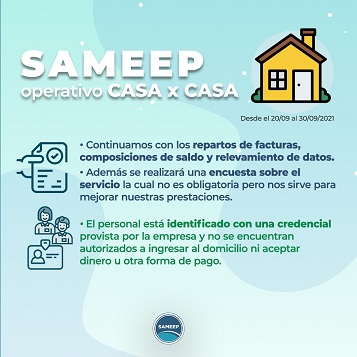 Locales | Más de 40 agentes de la empresa, recorrerán domicilios de los barrios ubicados en 4 chacras de Resistencia, donde realizarán un relevamiento general, reparto de facturas de consumo pendientes de pago, composiciones de saldo y una encuesta general sobre el servicio.