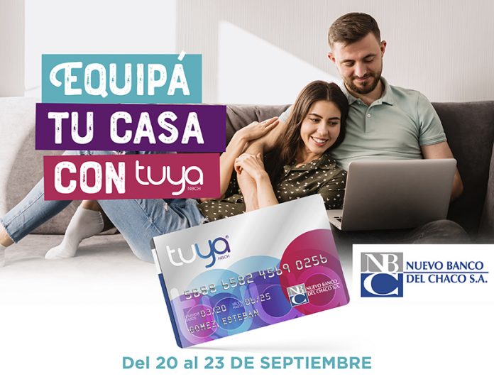 Locales | Tarjeta Tuya, marca propia del Nuevo Banco del Chaco, tendrá desde este lunes 20 y hasta el jueves 23, una promoción especial para renovar el equipamiento del hogar, con 5 y 10 cuotas sin interés para comprar en comercios adheridos de los rubros electrodomésticos, hogar y muebles.