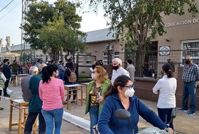 Demoras para ingresar al centro de votación de la U.E.G.P. N⁰4 "Rayos de Luz", largas filas donde hay mayores de 65 años mezclados con el resto de los votantes y la falta de claridad por parte de las autoridades, originó malestar entre los que esperaban en la vereda.