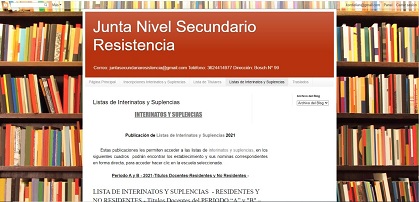 El Ministerio de Educación informó que el listado está publicado en la web de la Junta de Clasificación: https://juntanivelsecundarioresistencia.blogspot.com/.