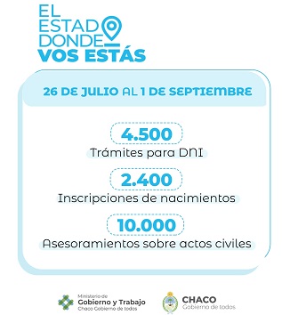 Los operativos buscan garantizar el acceso al Estado y los servicios públicos a chaqueños y chaqueñas, a través de la presencia de organismos nacionales, provinciales y municipales en los territorios.