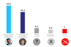 Nacionales | El candidato de Unión por la Patria (UxP) reúne el 44 por ciento de los votos, contra el 34 por ciento de Javier Milei de La Libertad Avanza (LLA). Los datos surgen de una encuesta realizada por Proyección, la consultora que encabeza Santiago Giorgetta.