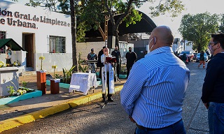 Locales | El intendente Gustavo Martínez acompañó a los trabajadores municipales durante la entronización y bendición de la imagen de San Cayetano en la Dirección General de Limpieza, en conmemoración del día del santo patrono del pan y del trabajo.