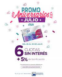 Locales | Desde este lunes 26 y hasta el viernes 30, estará vigente la promoción Aniversarios con Tarjeta Tuya para comprar en 6 cuotas sin interés más 5% de bonificación en comercios adheridos de La Leonesa, El Espinillo, Campo Largo, Las Breñas, Corzuela, Machagai, Presidencia de La Plaza y Avia Terai.