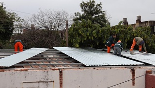Locales | Mediante el programa de Esfuerzo Compartido, Gustavo colabora con distintas instituciones de la comunidad aportando la mano de obra para distintos trabajos. Las entidades, por su lado, consiguen los insumos, como lo hizo la comunidad de la capilla Santa Teresa de Jesús Jornet, del barrio Provincias Unidas, donde se realiza el recambio del techo de un salón de usos múltiples, entre otras labores.