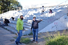 Gustavo observó el sector de canchas del Parque 2 de Febrero y evaluó las necesidades de refuncionalización en el área de bajotribuna, donde se planea una intervención integral de la pista de atletismo y la recuperación de sanitarios. Las obras también sumarán la pintura, renovación de luminarias y cerramientos.