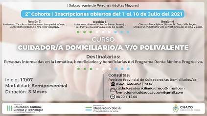 Locales | Las capacitaciones gratuitas con cupos limitados y por modalidad virtual comenzarán el 17 de julio. Están destinadas a quienes ya se desempeñan como cuidadores, personas interesadas y titulares de algunos programas sociales.